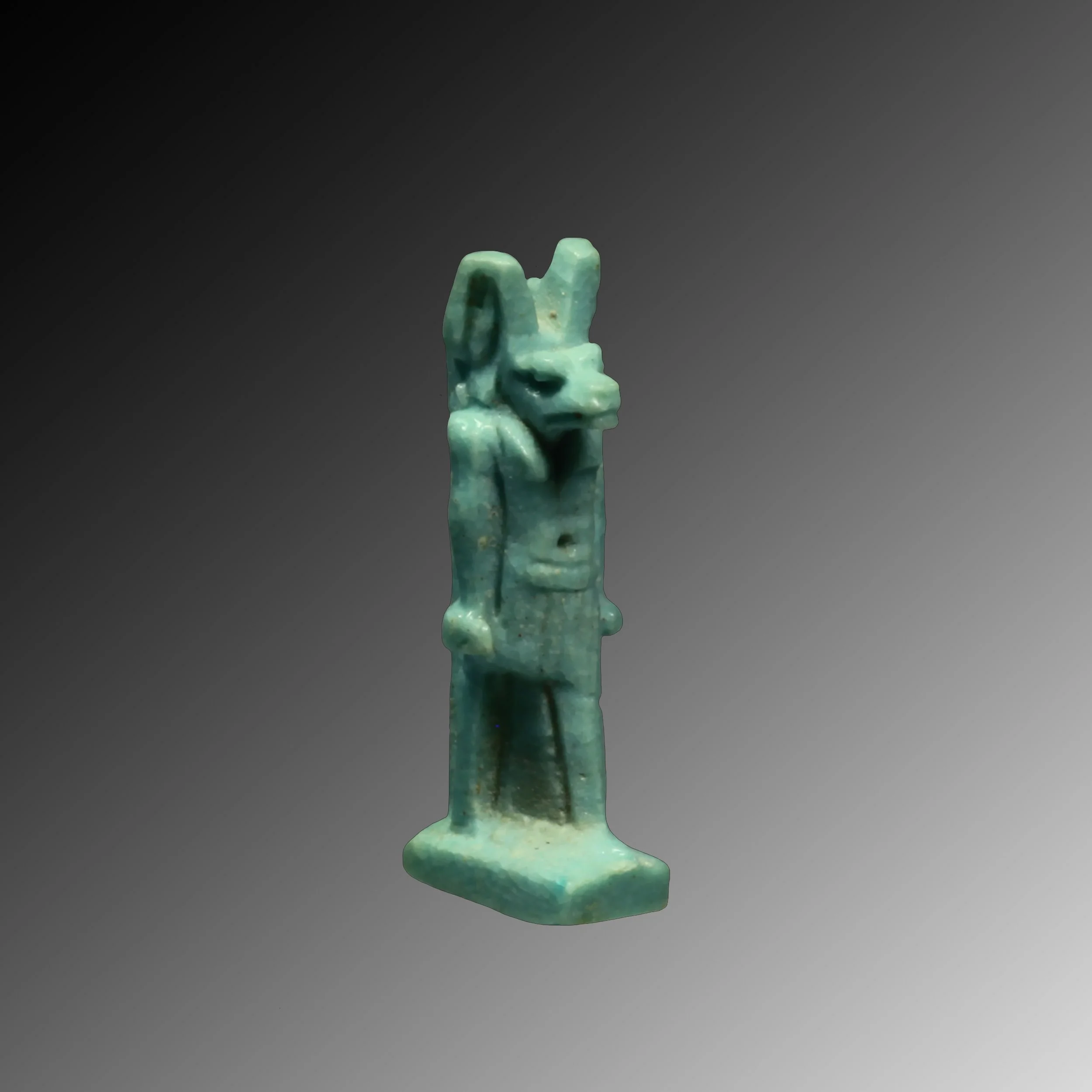 Ancient Egyptian faience amulet of the god Anubis.